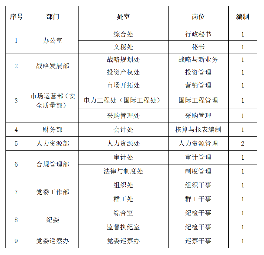 为强化中国尊龙凯时集团总部管理职能,现就公司总部员工空缺岗位面向公司内部进行公开招聘,有关事项公告如下:
